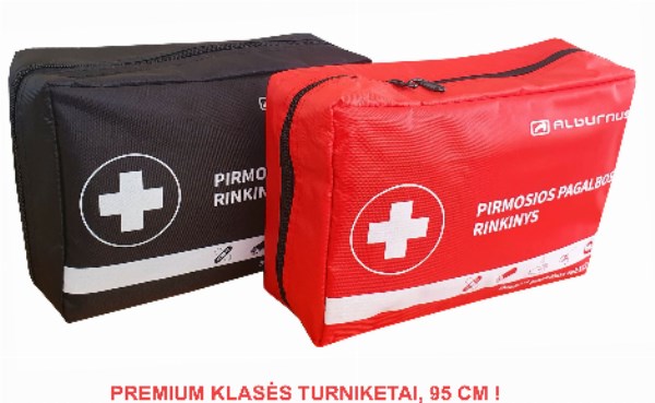 Naujos pilnos sudėties pirmos pagalbos rinkinys. Atitinka LR SAM 2020 m. gruodžio 10 d. įsakymą NR. V-2876, įsigaliojusį nuo 2022 m.
