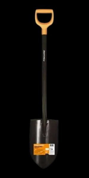 Pakuotė: 1 vnt Paskirtis: Sodo darbams. Pagrindinės charakteristikos: Ilgis su porankiu 128 cm. Lenktas metalinis kotas. Aprašymas: Kastuvas 195x260mm U formos, juodas su lenktu metaliniu kotu ir plastmasiniu porankiu.