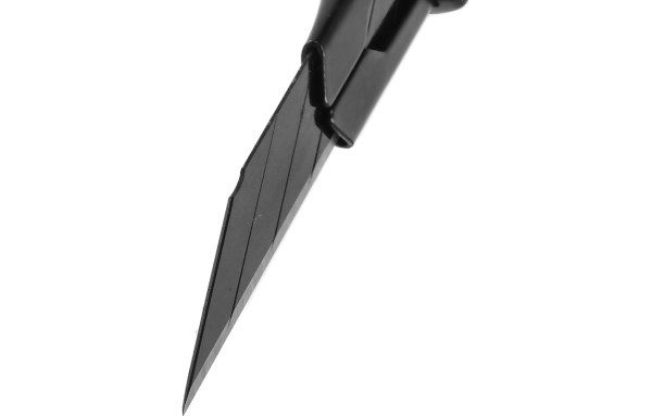 Aprašymas: Peilis popieriaus, kartono pjovimui. Su keičiama 9 mm pjovimo gelęžte. Peiliuko gale įmontuota kilpelė ir išsikišimas užkabinimui.