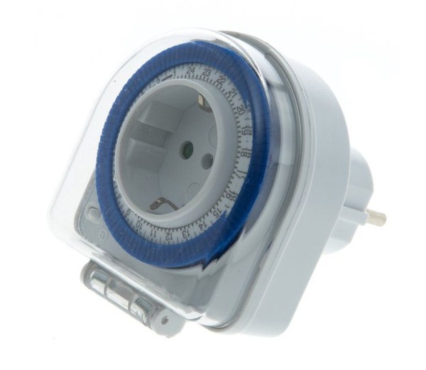 Aprašymas: Laikmatis tinkamas naudoti lauke. Reguliuojamas 24 valandų, minimalus laikas 15 minučių. IP44. Maksimalus 3500W / 16A