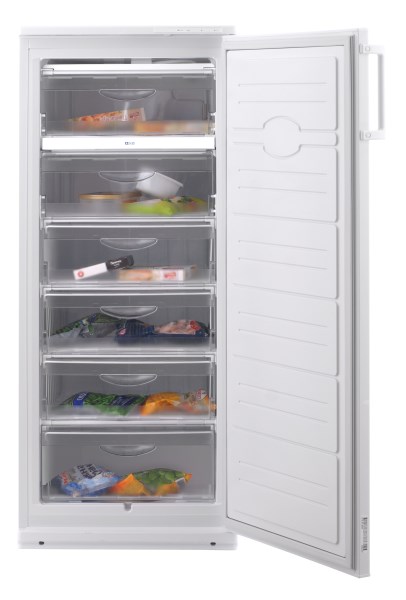 Aprašymas: Šaldiklis, baltos spalvos. Energijos sąnaudų klasė A+. Elektr.-mechaninis valdymas. Naudinga šaldiklio talpa: 220 l. Šaldiklio užšaldymo pajėgumas: 20 kg/24 val. Laikymo trukmė šaldiklyje dingus elektrai: 17 val. 1 kompresorius. 1 durys, 6 stalčiai. Matmenys (A x P x G): 150 x 60 x 63 cm.