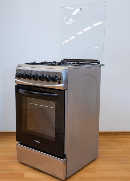 Nerūdijančio plieno priekis, šonai pilkos spalvos, stiklinis dangtis.