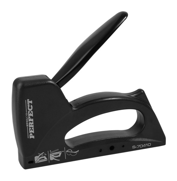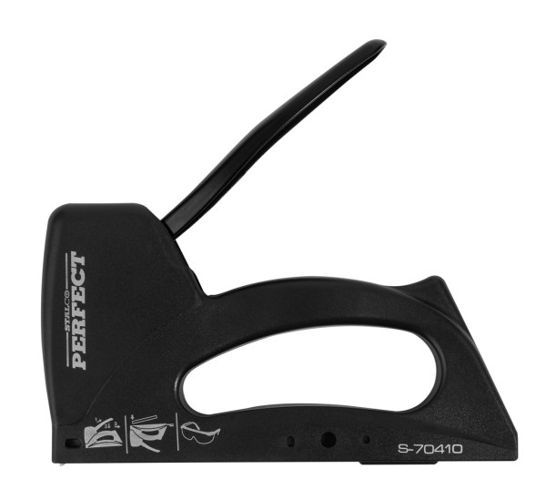 Pakuotė: 1 vnt Paskirtis: Izoliacinių medžiagų, plėvelių, tekstilinių apmušalų ir t.t. tvirtinimui. Pagrindinės charakteristikos: Šiam pistoletui tinka: 53 tipo segtukai nuo 6 mm iki 14 mm. Vinutės No.8: 14 mm. Vinutės No.9: 14 mm. Korpusas metalinis. Aprašymas: Pistoletas plėvelių, apmušalų, apdailinių juostelių ir kitų izoliacinių medžiagų tvirtinimui. Kabiamušis su fiksuojamu rankenos užraktu. Reguliuojama smūgio jėga 2 padėtimis.