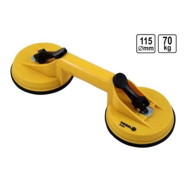 Pakuotė: 1 vnt. Paskirtis: Stiklų ir kitų daiktų kėlimui. Aprašymas: Rankena nešimui Vorel. Skirta kelti daiktus su lygiais ir švariais paviršiais. Įrankis prisitraukia rankiniu būdu spaudžiant mygtuką. Naudojama kelti langams ir automobilių stiklams, keraminėms plytelėms, metalo lakštams, laminuotoms plokštėms iki 60 kg. Korpusas pagamintas iš patvaraus ABS plastiko su guminiu 204 mm siurbtuku.