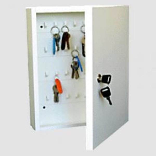 Aprašymas: Metalinė dėžutė raktams yra skirta raktų saugojimui. Dėžutės yra užrakinama su spynele (2 raktai),viduje yra 36 kabliukai raktams sukabinti.