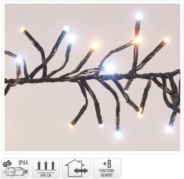 Pakuotė: popierinė dėžutė Paskirtis: Kalėdinė girlianda. Skirta naudoti patalpose ir lauke. Aprašymas: LED girliandos naudoja 90% mažiau energijos. Jos yra saugesnės, visiškai nekaista, šviečia daug ryškiau. 64 lempučių LED girlianda. Bendras energijos suvartojimas - 0,9W.